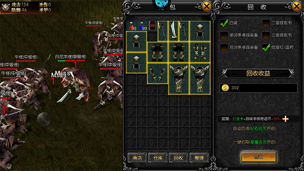 5、最后我们还可以将多余的装备进行回收来获取金币