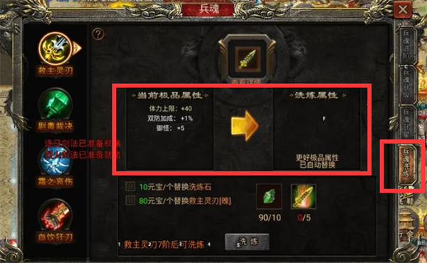4、兵魂洗炼:这个需要兵魂进阶达到7阶才可进行洗炼,这个洗炼和装备洗炼相似,可进行洗炼加属性