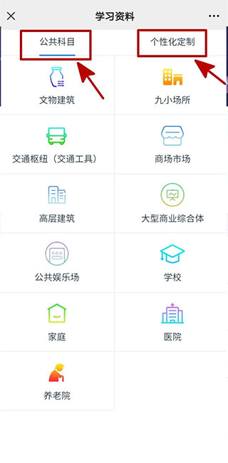 1、点击进入学习资料,选择对应课程进行学习,学习完每个课程获得相应积分。“学习资料”包括11个“公共科目”和12“个性化定制”科目,每个科目设置有视频、案例、课件等学习内容。
