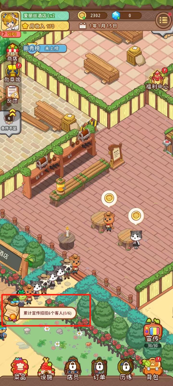 完成客人对餐厅运营提出的要求即可获得奖励,任务类型包括餐厅宣传、店员培养、菜品评分、营业能力、设施评分等方面;
