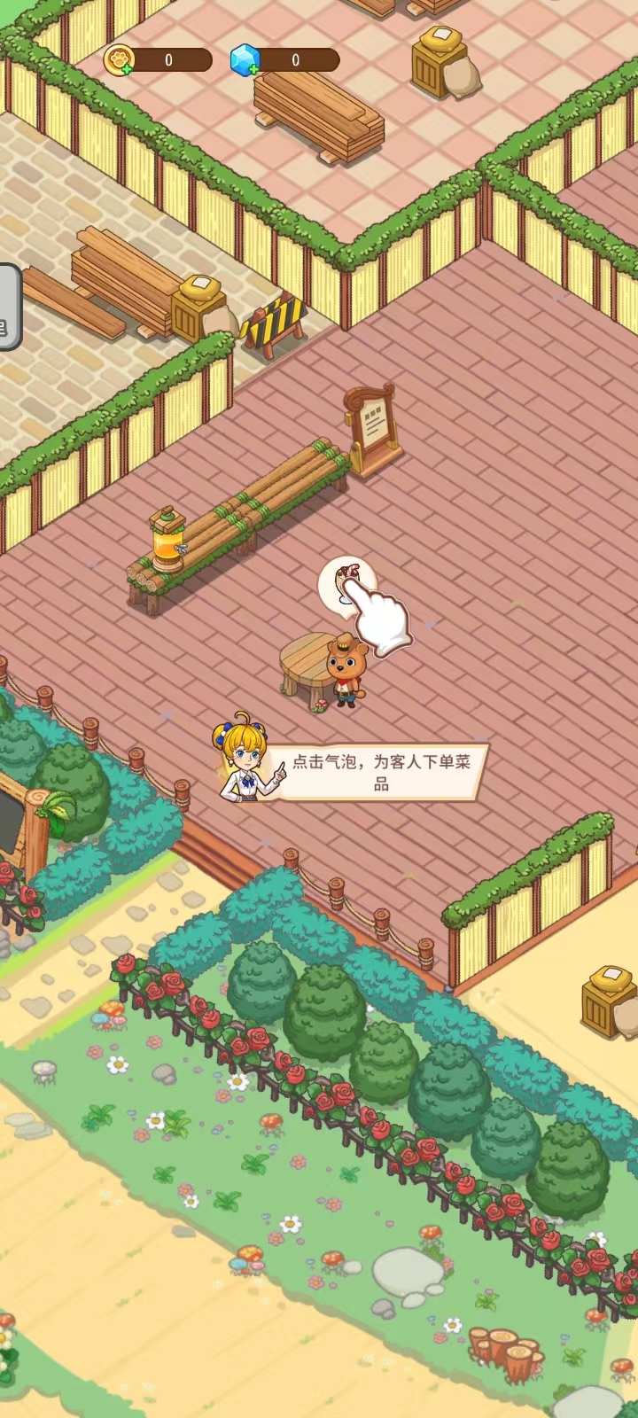 7、当客人喝完以后,点击气泡,就可以获取报酬;小动物们用餐之后,会对餐厅进行满意度评价哦~