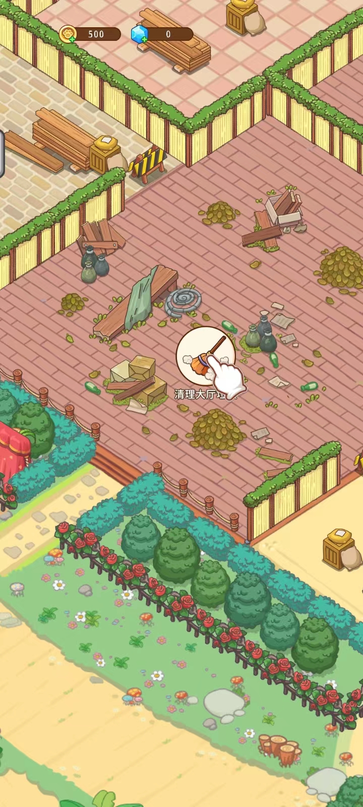 3、然后需要先清理一下大厅的垃圾;