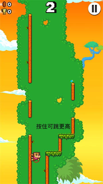 2、随后按住屏幕时间长短,可以决定跳跃的高度