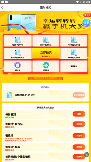 5、另外,你还可以点击右上角的抽奖活动,进行抽奖,还有可能得到华为P30哦!