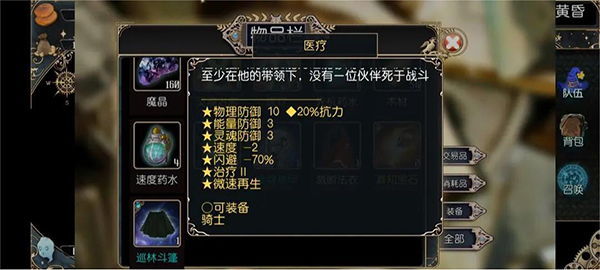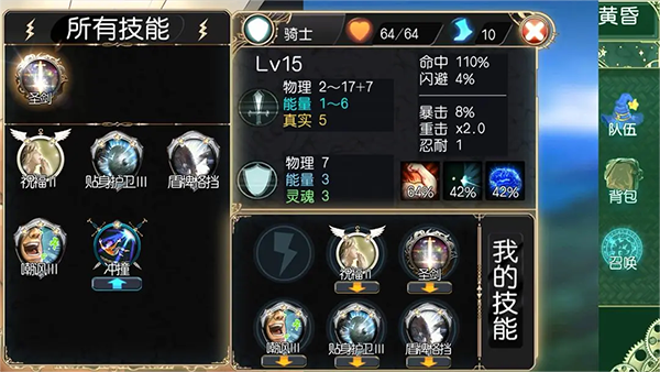 骑士:命中>阻挡>反击>物理攻击加多少>血量加多少>速度>其他