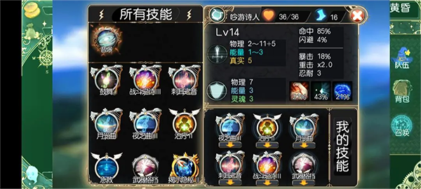 诗人:战斗诗点满,治疗和夜之曲是装备带的,下文装备会附图 别的随意。