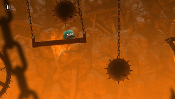 11、有很长的一段路上遍布尖刺应该怎么过去呢,首先将速度加快,然后不停的向上滑动右手指让毛球膨胀漂浮起来,不至于马上掉下去。