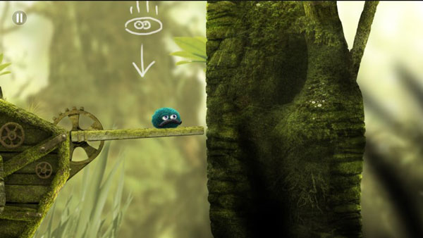 画面风格也很可爱,毛茸茸的毛球配上幽默的场景设计,热带森林、沙漠、古埃及各种地方都有,视觉体验挺舒服的。操作方式有两种,按钮和触屏都能用,触屏的话更直观,滑动手指就能控制毛球移动或者膨胀身体过障碍。