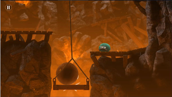 12、来到这里下滑手指让左边的重量加重,吊起右边的大石头,然后快速的通过,否则就会被压死在石头下面。过去后这一关就算完成了。