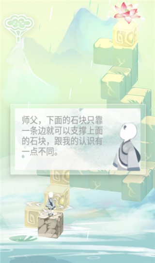 爱莲说是一款深受玩家喜爱的休闲手游,它以其独特的唯美国风和丰富的游戏内容吸引了大量的玩家,这款游戏的名称源自周敦颐的《爱莲说》,以此为灵感,设计了许多富有故事性的游戏剧情,让玩家在游戏中体验到深厚的文化底蕴。在爱莲说中,玩家可以遇到大量的解谜关卡,这些关卡设计巧妙,挑战性强,需要玩家运用智慧和技巧去解决,游戏的背景音乐优美动听,配合水墨淡彩的美术风格,营造出一种唯美的游戏氛围,使得玩家仿佛置身于一个清新脱俗的世界之中,游戏中的小和尚是玩家的主角,他需要通过推、拉、跳、攀登等动作,一步一步爬上方块组成的山的顶峰,摘下那朵象征着胜利的莲花,在这个过程中,玩家可以让小和尚直接翻上一块石头,也可以让他扒着石沿走到另外一个方向,但是,玩家必须小心谨慎,因为一不小心就可能使小和尚掉入万丈深渊。