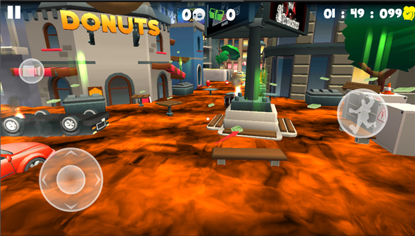 我还注意到游戏有很多特色玩法,比如摧毁特殊障碍物可以得分,路上还能捡到红心来免疫掉进岩浆的伤害,虽然屁股会被烫出火,但听起来有点搞笑。另外,角色自定义的部分也挺有意思的,手脚和身体都可以装饰,感觉能玩很久。