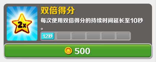 在道具有效时间内,每收集一个金币即可获得两倍于原先倍数的得分。