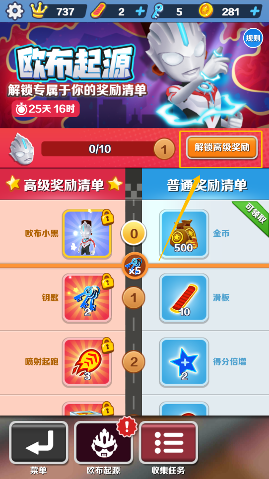 地铁跑酷&奥特曼联动再次上线,全新联动角色[欧布小黑]与哥莫拉青青]降临地铁跑酷,欧布小黑还带来了专属装扮[光辉装扮],佩戴上滑板[欧布圣]和背饰[欧布之光],酷炫的外观和装扮把武力值拉满!