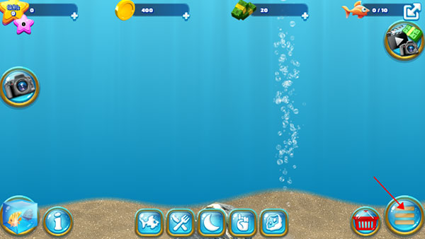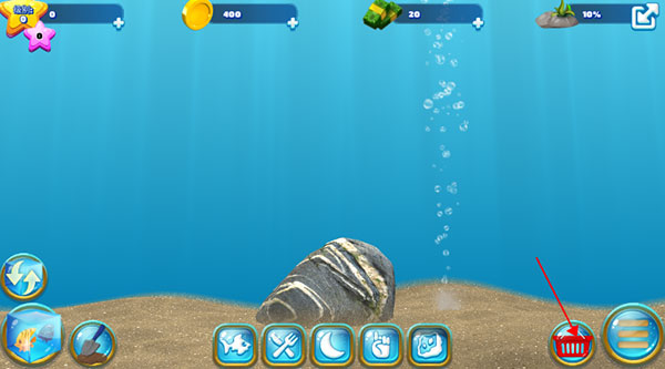 1、最开始你的鱼缸是没有任何鱼的,但是你有一笔启动资金,点击购物篮。