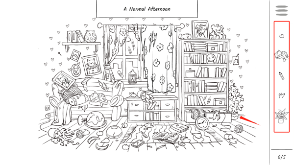 3、游戏玩法简单,就是找“东西”,将关卡右侧的物品在图画中找到