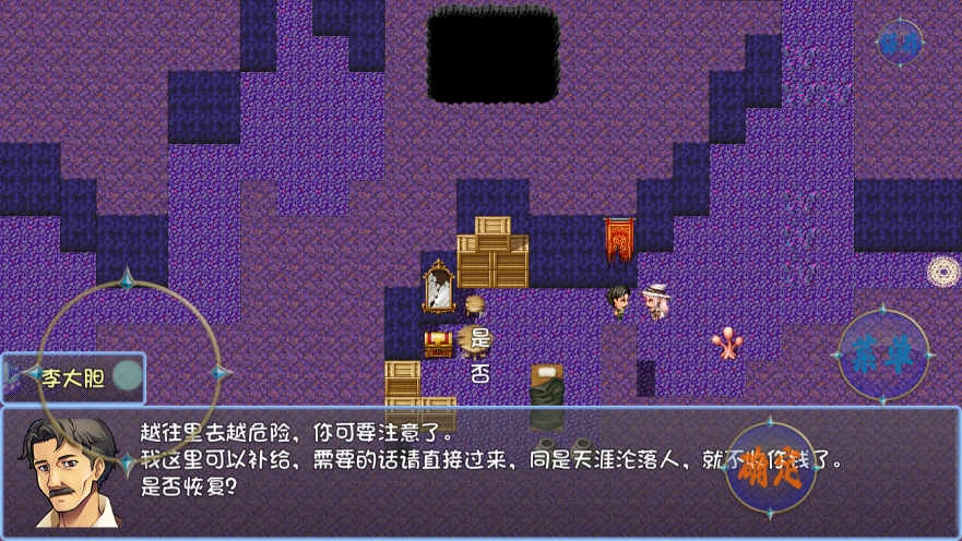 8、把所有的绿色生物打败以后,去开启宝箱(走到宝箱面前,点击确定按钮就可开启),可以获得一瓶药水;
