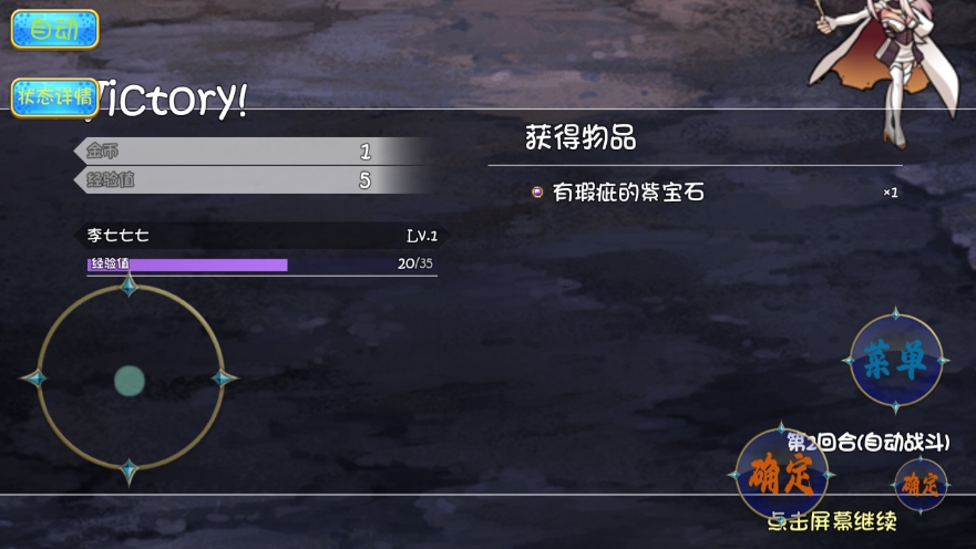 6、学习好后,回到之前的地方,走到绿色的生物面前,就可以进行战斗,可以点击左上角的【自动】就可以不用动手操作;