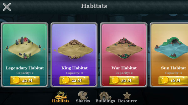 欢迎来到海底世界,在这里,你将领略到弱肉强食,适者生存的真正含义!鲨鱼世界是一款以鲨鱼为题材的模拟经营游戏,采用先进的3D画面设计,完美还原了海底的各种生物与环境。游戏中玩家可以解锁鲨鱼等各种不同的海洋生物冒险,可以收集蛋进行孵化获得各种生物,对它们进行饲养、抚育你的鲨鱼并与海怪交战,注意不同的鱼有着不同的技能,你需要进行合理的搭配。在这里玩家可以通过完成任务,寻找宝物取得金币与宝石,用来升级你的鲨鱼或者购买特殊救生道具,来提升玩家培养的鲨鱼战斗力,除了这些方法可以提升战力,还可以解锁更多水下凶猛野兽,灰鲭鲨、锤头鲨、虎鲨和无敌的大白鲨,只有提升了战力,方有可能进行最终的生存挑战。