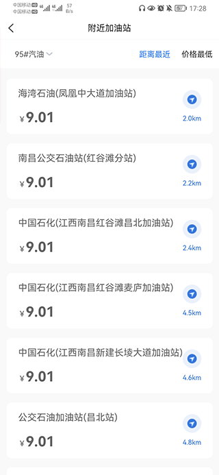 4、在附近油站功能中,系统会为用户自动定位当前距离最近的油站,并为你导航到油站加油