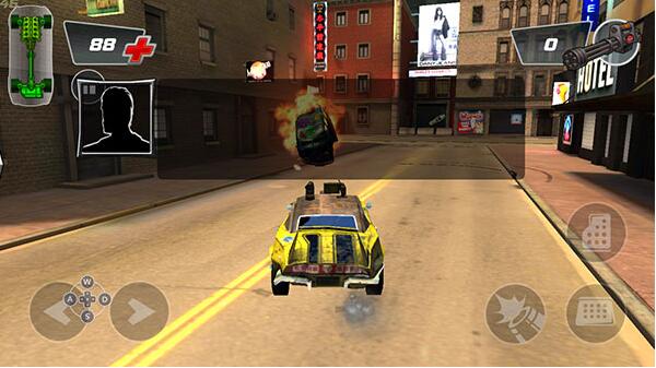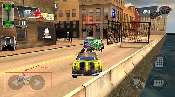 2、进入游戏后,我们先熟悉一下操作,左边控制方向,右边控制油门、刹车、以及射击;
