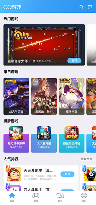 腾讯qq游戏大厅手机版2025是腾讯首款自主研发的游戏产品,同时也是全球最大的“休闲游戏社区平台”,其作为腾讯的游戏平台产品,力争为用户提供全面的棋牌,休闲等游戏内容。同时游戏秉承“绿色、健康、精品”的理念,不断创新,力求为用户带来无处不在的快乐。值得一提的是该游戏平台拥有超百款游戏品类,涵盖棋牌麻将、休闲竞技、桌游、策略、养成、模拟经营、角色扮演等游戏种类,是名副其实的综合性精品游戏社区平台。作为腾讯游戏旗下历史最悠久、最具生命力的游戏产品之一,在2011年末,qq游戏大厅手机版首次实现界面、交互突破式革新,再次提升运行速度,大幅优化用户体验。并且在原有休闲游戏平台基础之上,丰富了桌游、策略、养成、模拟经营、角色扮演等多种游戏类型,向综合性精品游戏社区平台迈进。