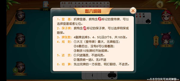 今天小编为大家为大家带来了同城游保皇手机版,它比普通的保皇游戏增加了一些山东本地特色玩法,例如“3个2灭大王”、“4个2灭老花”、“憋3进贡(每人一张3)”、“叫保登基”以及“可贴钱挂花”等。