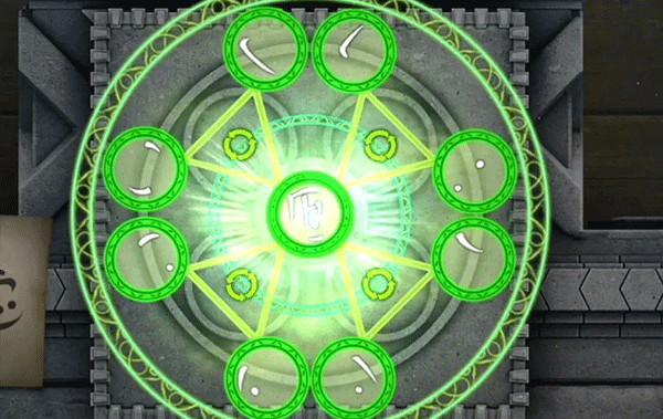 寻物过程中还有个放宝石的小游戏,每个宝石能让旁边3*3的格子上红宝石亮起,摆放如下图~完成后拿到梯子,对左侧断掉的楼梯使用梯子就能上楼了,和npc对话剧情后继续解谜。
