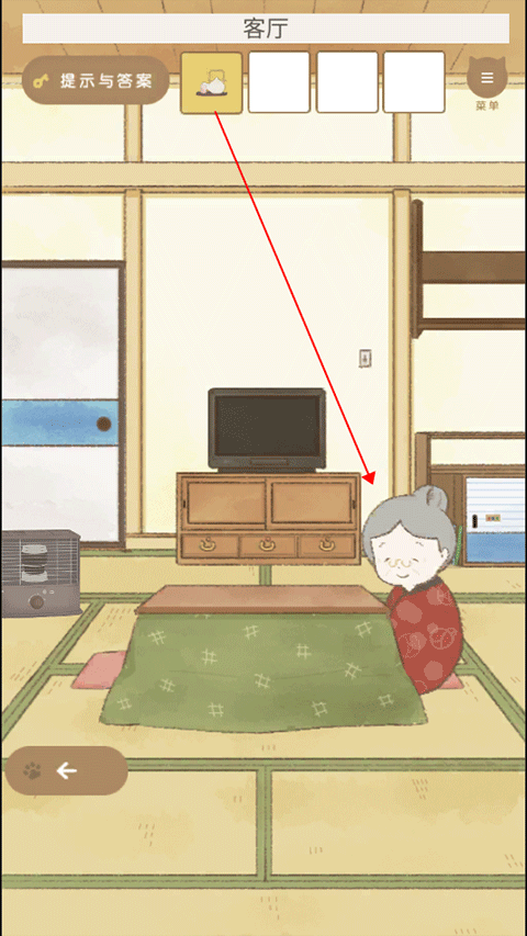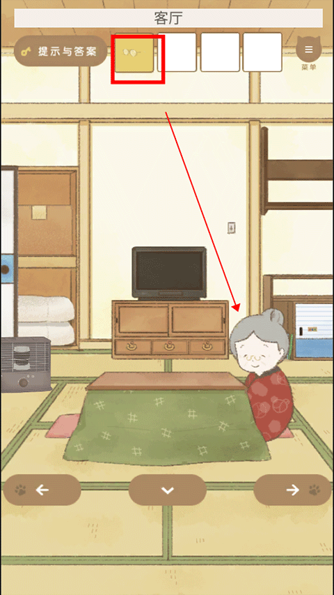 4、柜子打开,获得【眼镜】,给奶奶戴上,拿【绘本】给奶奶