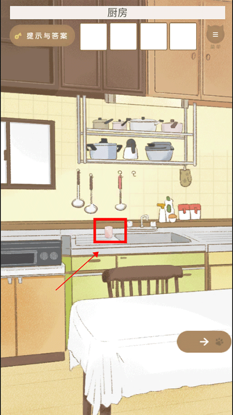 先到厨房拿到狗粮,再来到侧缘左下角的地缝里摸出狗盆(就在之前捡到纸条那里),把狗粮倒进狗盆,交给大门外守着洒水壶的狗狗吧。不要忘记先去洗手池装水再浇田。