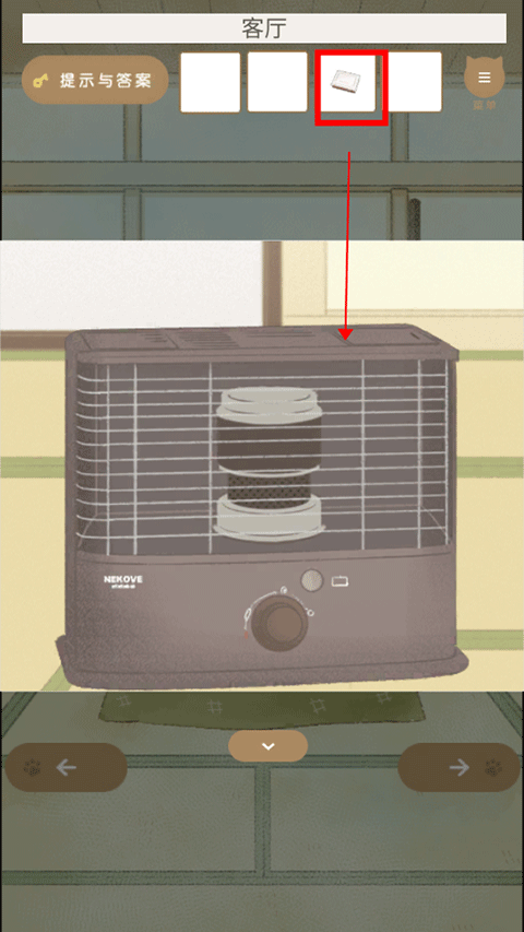 3、(客厅)点击火炉,打开右边的盖子,获得【油壶】