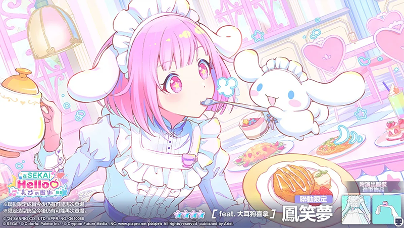 3、新增联动限定的★4成员:[feat. Hello Kitty]初音未来、[feat.布丁狗]天马联希、lfeat.美乐蒂]桃井爱莉、[feat.帕恰狗]青柳冬弥、[feat.大耳狗喜拿]凤笑梦、[feat.酷洛米]东云绘名