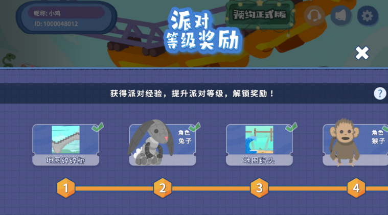 4、新增内容:创意工坊、新地图、衣橱功能、好友功能、派对等级、每日任务