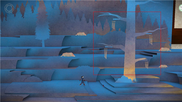 4、这个场景会出现狼,我们先不要管继续往前走,然后楼梯便会收起来。我们再继续向右走,一直到我们看到四个风铃,然后我们将其拉开。正确的顺序:首先右下方、然后左上方、其次右上方、最后左下方。