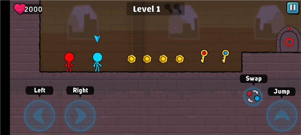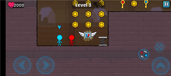 3、玩家在游戏里面需要帮助红色和蓝色的两个小人。
