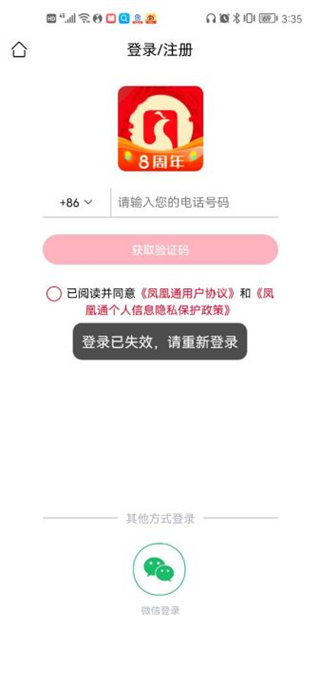 1、首先我们进入软件,可以先进行登入或者手机号码、微信都可以。