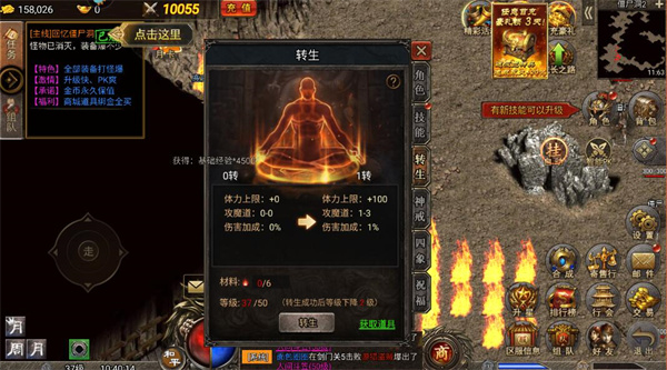 转生务必看这里,跟着boss走,点击首页挑战BOSS既可以获得转生石等相关转生道具!路径:点击【挑战BOSS】→【点击转生】立即可以看到相关BOSS;