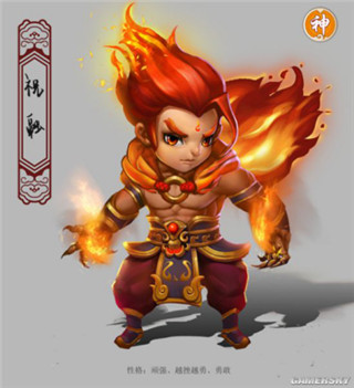 祝融的输出可以说是超级暴力,甚至比王母还要强势。一技能范围伤害,二技能范围伤害减对面法抗,三技能是一个很变态的技能,如果对面濒死会直接终结打出爆炸伤害。但是跟女娲一样,作为一个中排英雄,会吃到对方前排aoe的火力,但是作为一个中排,却是初始二星的尴尬设定,灵魂石获取也不是很容易,只能处在一个尴尬的地位。