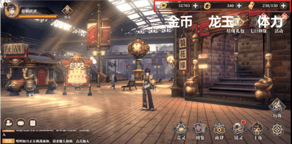 在游戏中重要资源有体力、金币、龙玉三种,其余资源都是围绕这三大资源产出的,其中体力可以用来打各种副本和开荒历练,金币主要是镜灵和器灵升级的必须消耗品,龙玉是最高级货币,除了可购买商城货品以外,还可以购买体力。