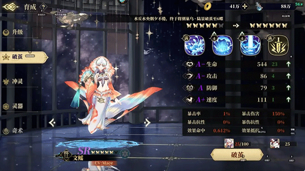 满蝶满灵气情况下三技能能提升40%伤害和40%效果命中,二技能能够让全队普攻两次,不过第二次有伤害递减。