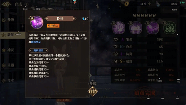 放满三次能够拉全队重新行动一次以及相当于给输出增加二十双爆属性,