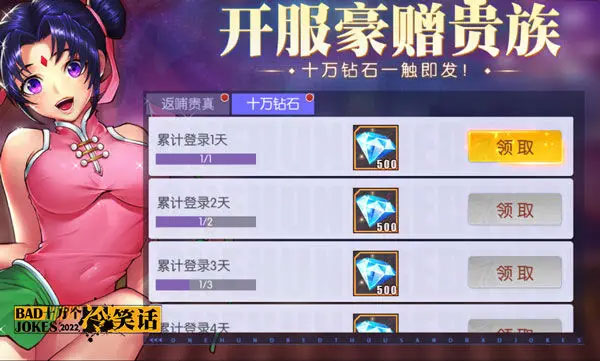 想要获取钻石,就要先从最划算赚得最多的活动抓起:登录就送100000钻(没打错0)的天命贵族!投资1000钻返还20倍的开服基金!达成条件就给26950钻的成就奖励……每一个数字都多得让人头脑发晕,拿下了这些几、乎、白、送的活动,保证你钻石滚滚来。