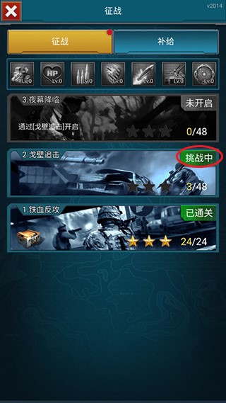 1、点击屏幕下方征战可以进入关卡页面。
