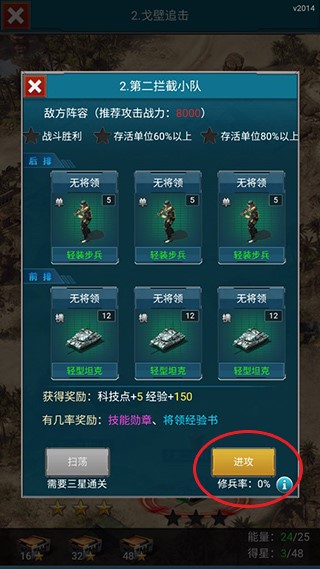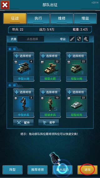 4、随后调整好部队阵容再点击进攻即可进入关战斗。