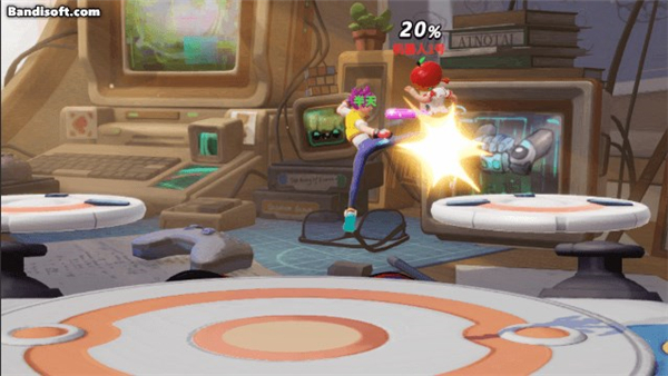 5、每一局的pk战斗时6分钟,在战斗界面顶部的是pk时间,如果在时间结束后双方剩余的生命一样,将迎来决胜时刻,决胜时刻会增加6分钟,次数两人的击飞值会变成300,而且同时平台会慢慢变小,双方的对决也会越来越激烈。