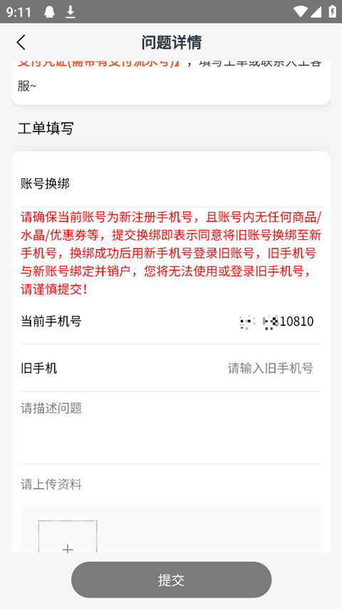 4、按要求填写旧手机号和相关描述,等待审核通过后即可用新手机号登录原账号。