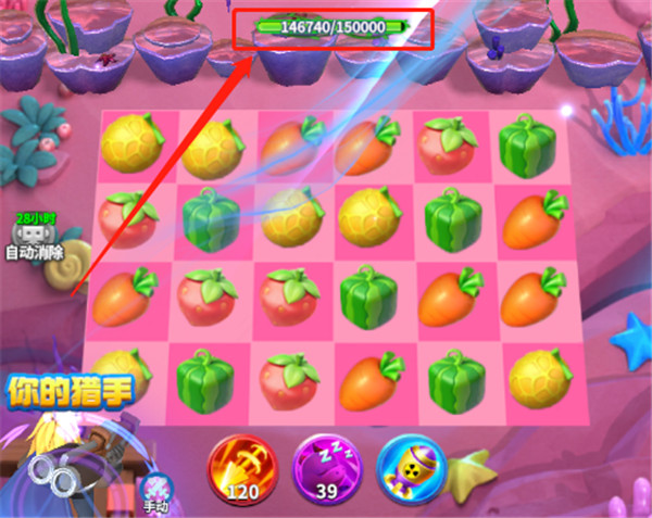 同时消除的水果数越多,生成的水果弹越多,对海妖的伤害越高~