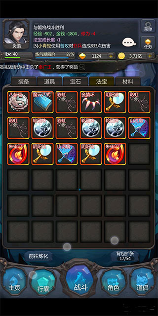 6、放置养成:不用在线挂机,让你工作之余也能放松心情,人法地,地法天,天法道,道法自然。