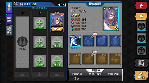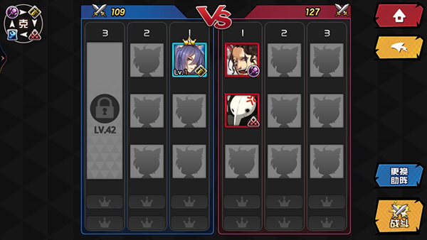 选择好关卡之后,点击开始之后,会进入英雄布阵,可以调整上阵英雄,调整完点击战斗即可。