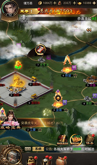 玩家在世界页面可以进行城池的攻打,攻打的城池越多,获取的奖励也越丰富