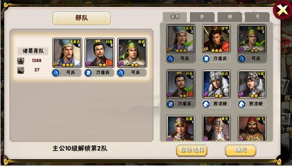 点击“部队”可以查看当前部队数和每队上阵的武将